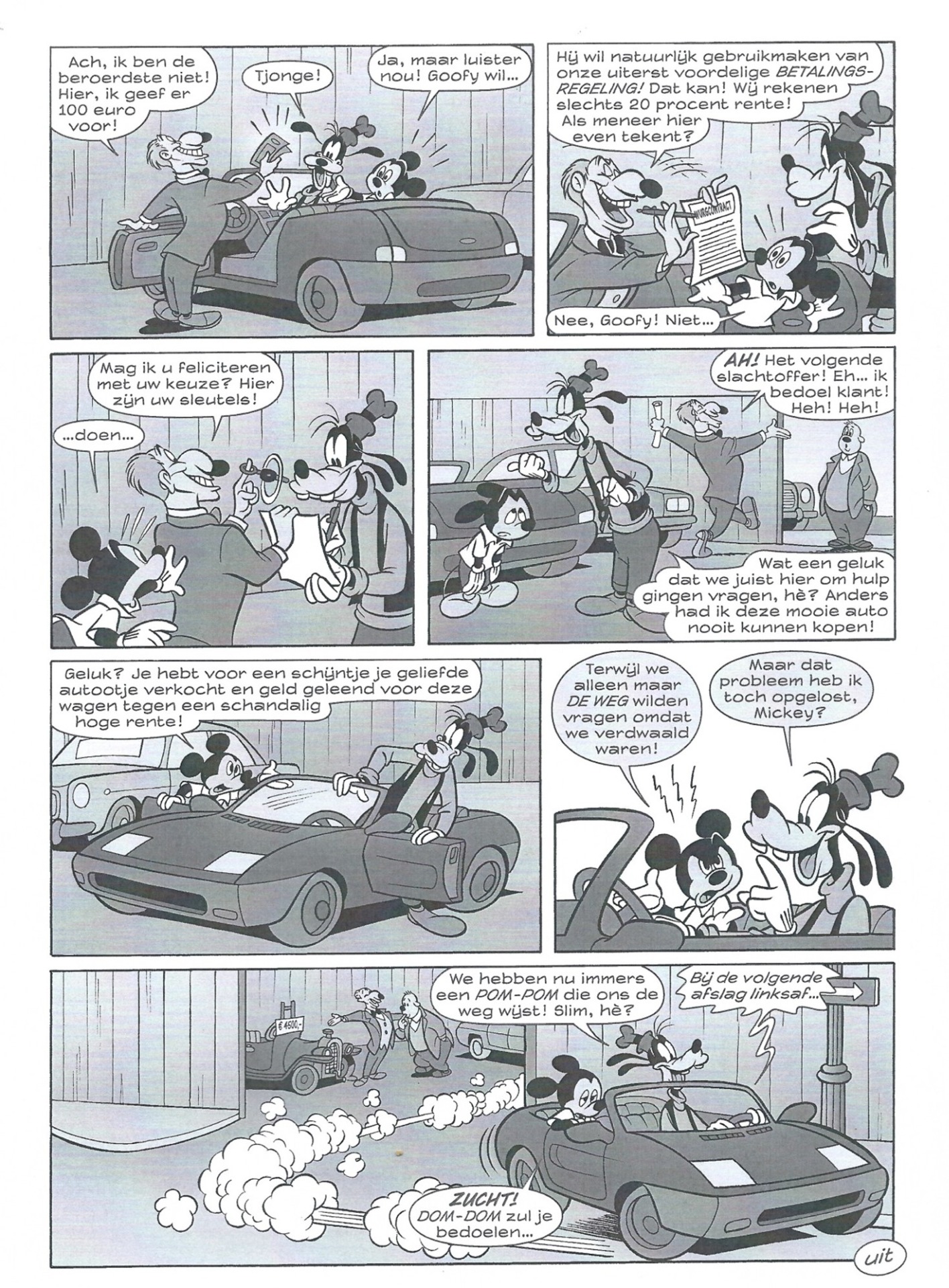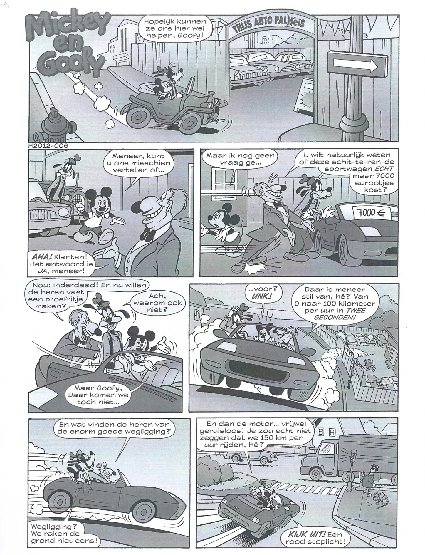 In het stripverhaal van Mickey en Goofy valt op dat de autoverkoper zich heel vreemd gedraagt. Zodra ze het terrein oprijden, begint hij enthousiast te praten en geeft hen geen kans om uit te leggen dat ze alleen de weg wilden vragen. De verkoper laat Goofy meteen een testrit maken in een sportwagen die maar €7000 kost en zogenaamd van 0 naar 100 km/u gaat in 2 seconden! Goofy is meteen enthousiast, terwijl Mickey doorheeft dat er iets niet klopt.